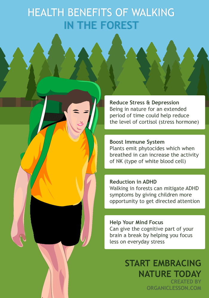 Being in nature can also help boost your immune system. Trees and plants release phytoncides, which are chemicals that help protect them from germs and insects. When we breathe in these natural chemicals, our bodies respond by increasing the number and activity of a type of white blood cell that fights infection and even cancer.
