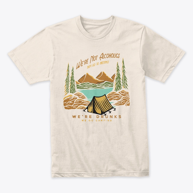 Welcome to our virtual merch shop! This is where we sell our custom-designed camping-centric clothing & accessories. Our designs are available on more than just T-shirts though – we’ve got mugs, flags, blankets, hoodies, bike shorts, rugs, leggings, stickers, the kitchen sink, find a design you like then click below to shop the entire collection.