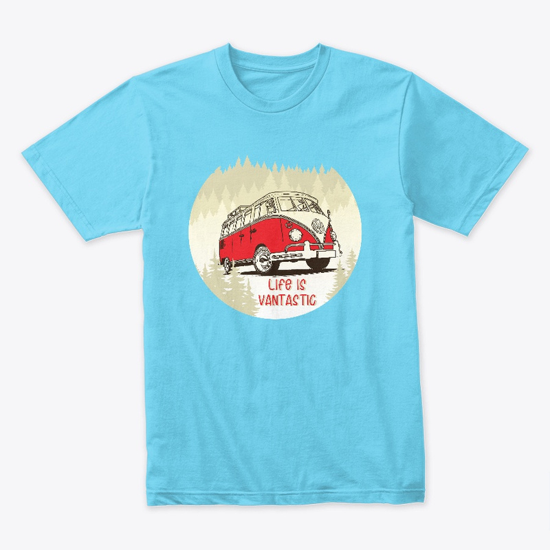 With real estate at an all-time high – all of the cool kids are buying a van, and living in it – you should try it. This “life is vantastic” design is available in two versions – with or without the forrest in the background.